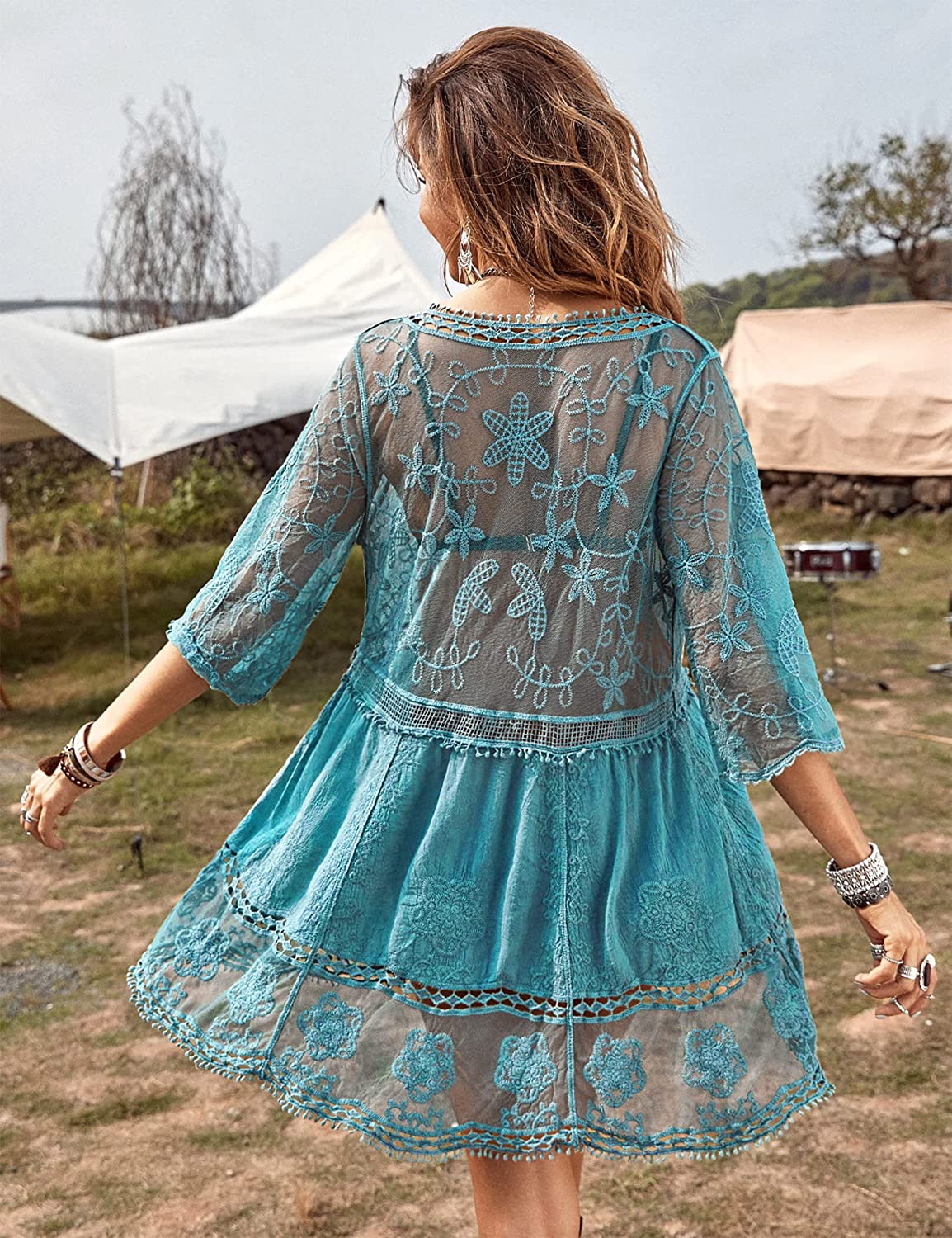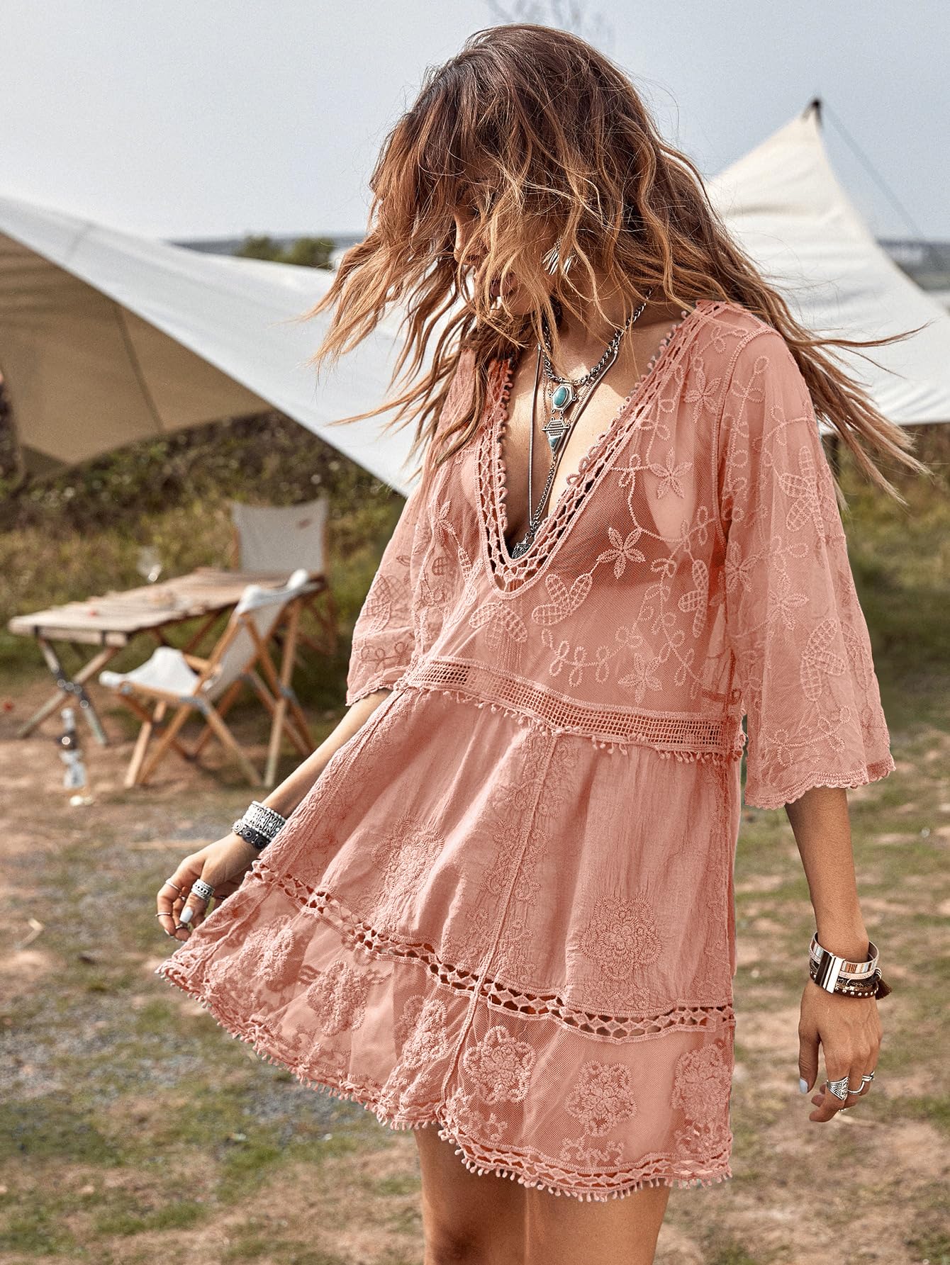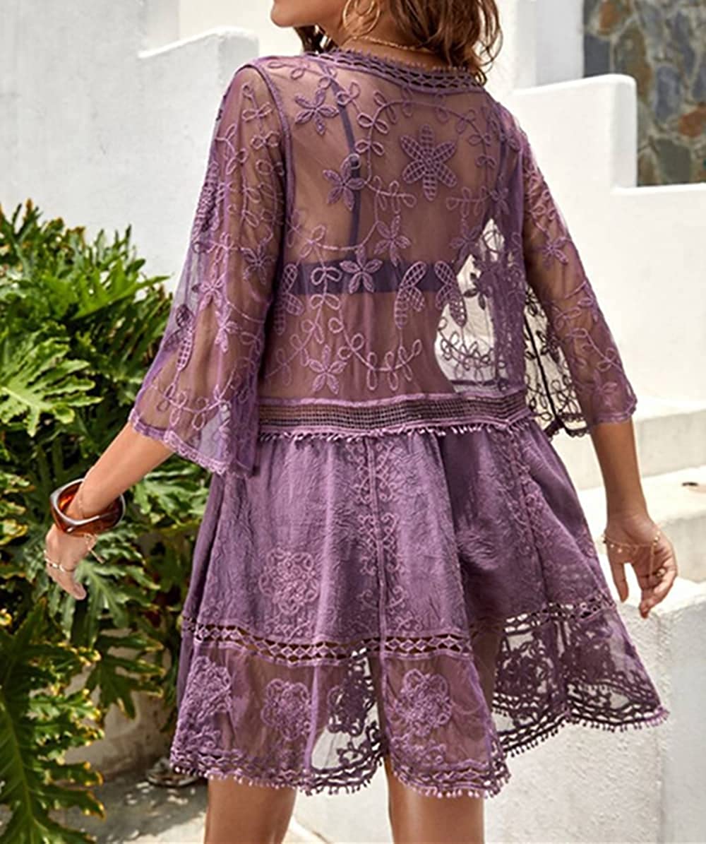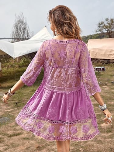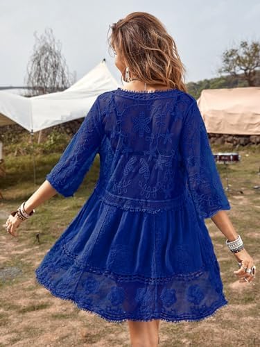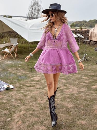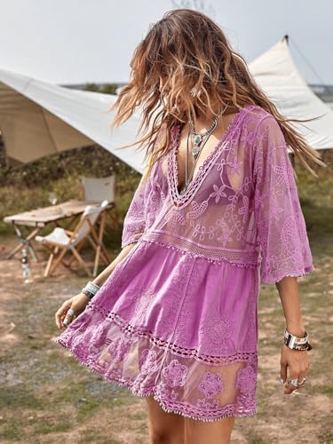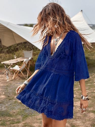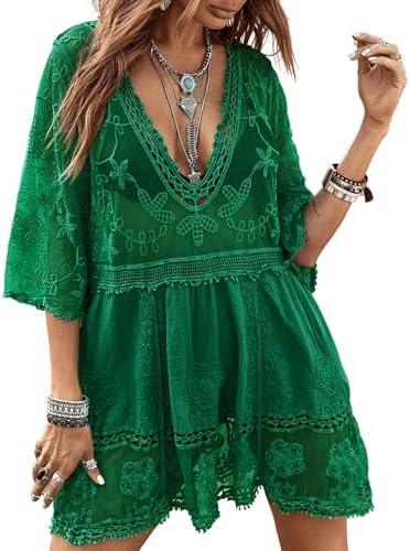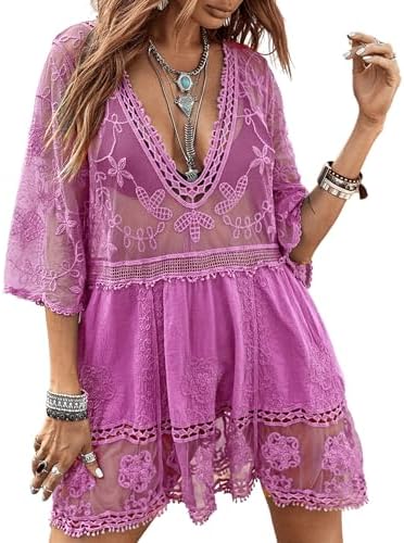 B2prity Women's Contrast Lace Bathing Suit Cover Up V-Neck Swimsuit Coverups Loose Swimwear Beach Dress Beachwear B2prity Women's Contrast Lace Bathing Suit Cover Up V-Neck Swimsuit Coverups Loose Swimwear Beach Dress Beachwear