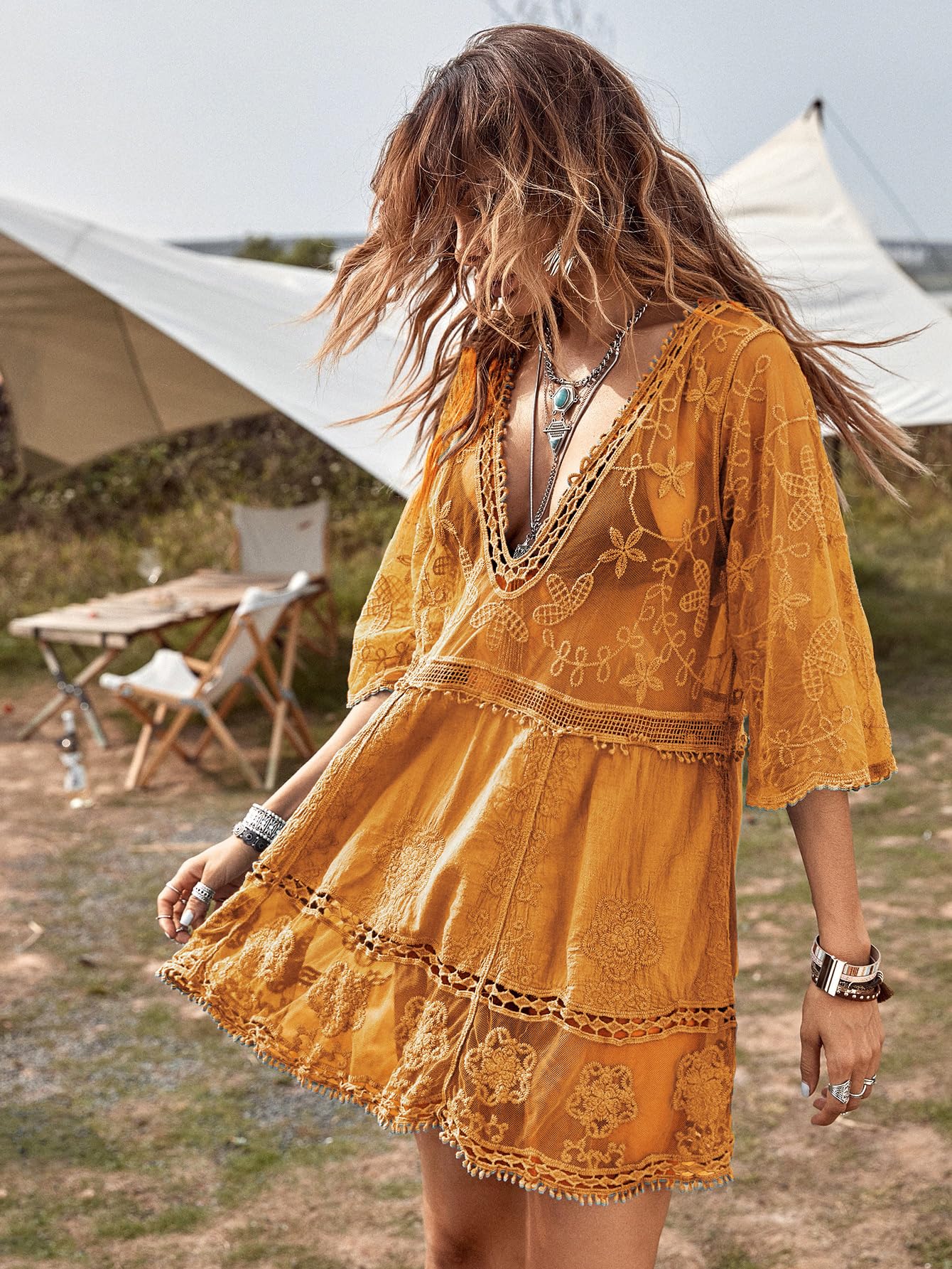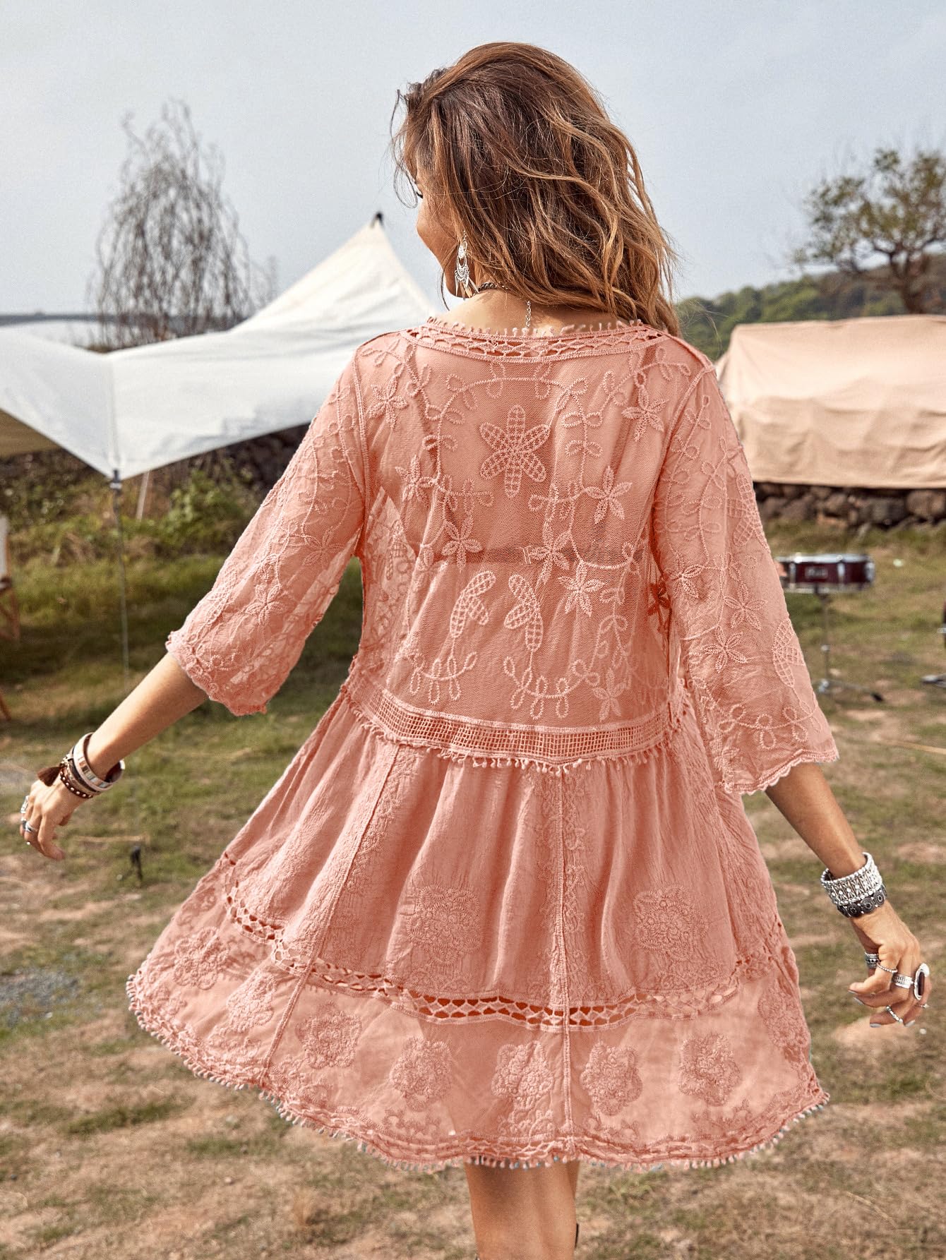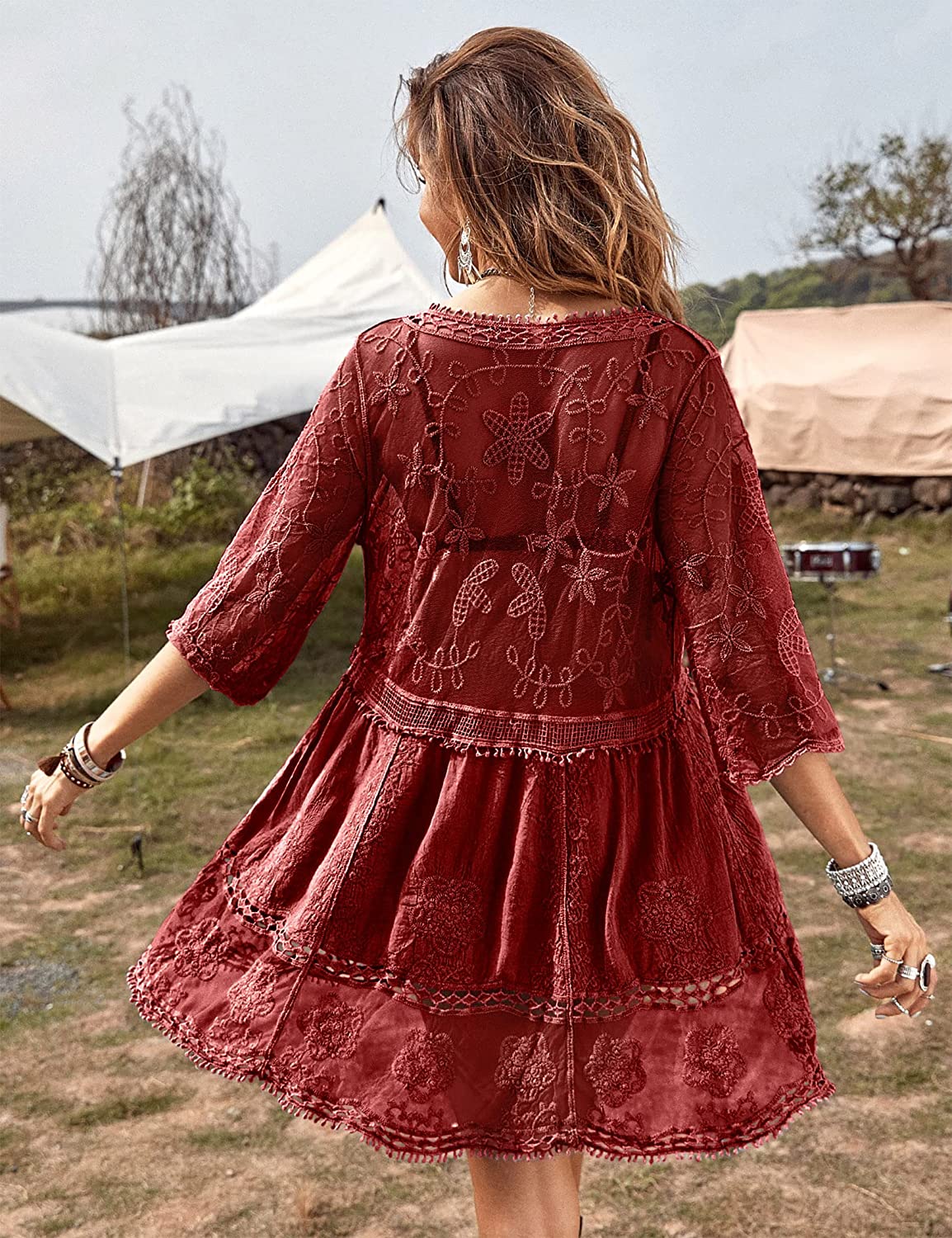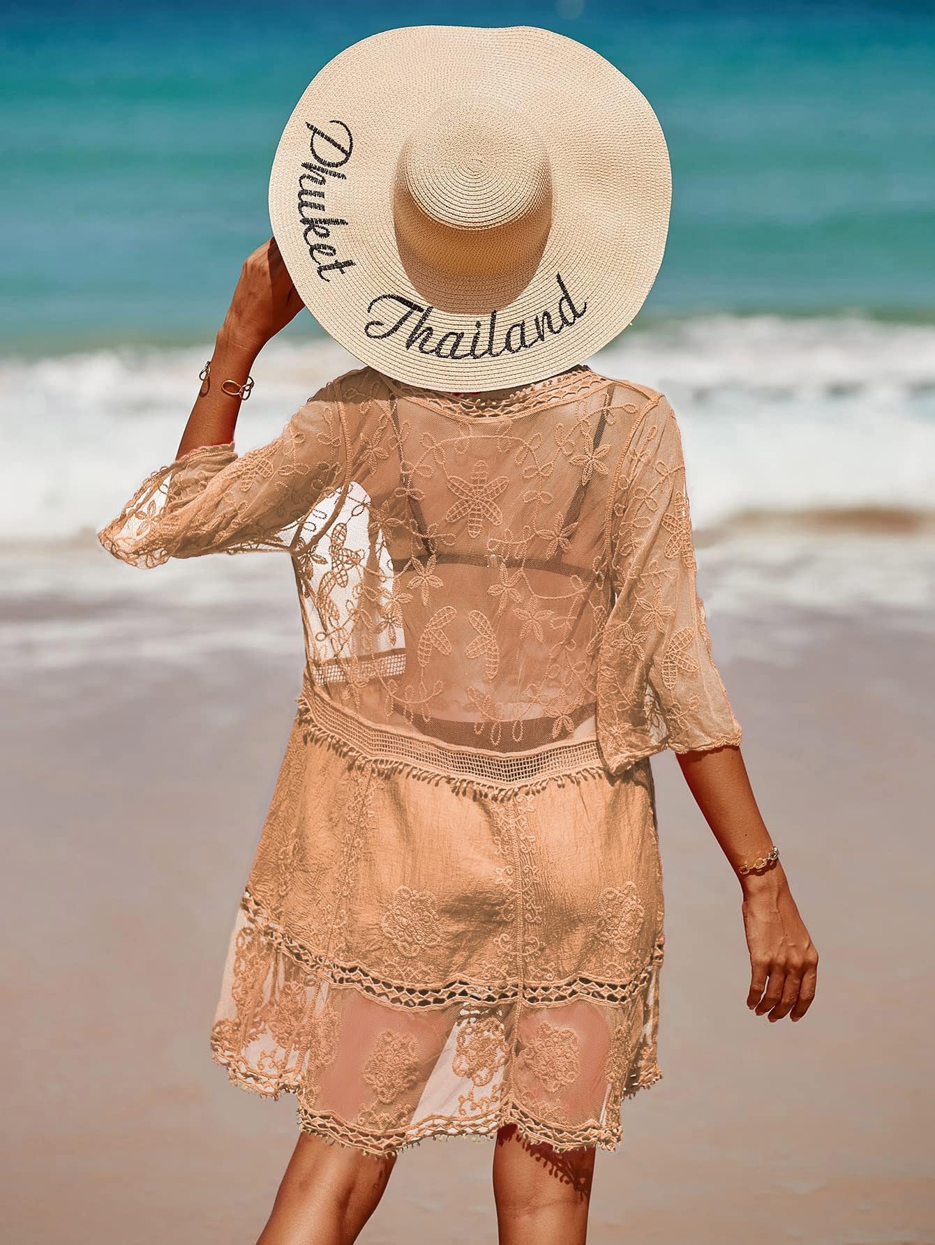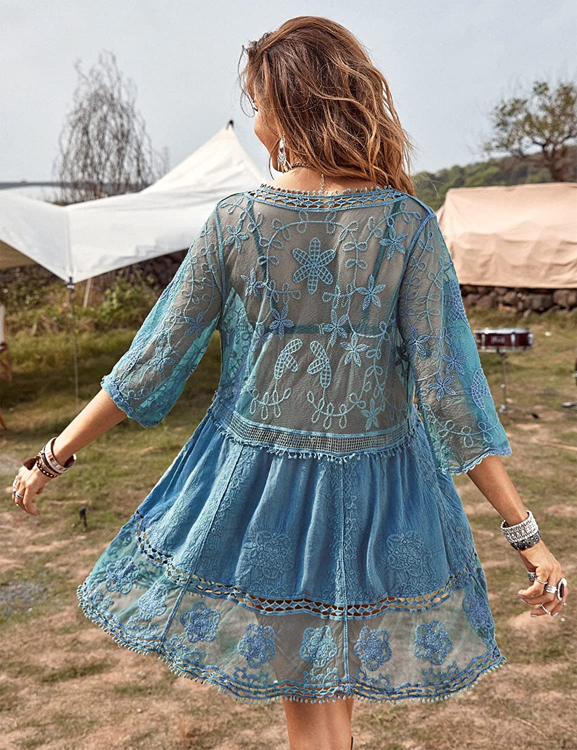 B2prity Women's Contrast Lace Bathing Suit Cover Up V-Neck Swimsuit Coverups Loose Swimwear Beach Dress Beachwear B2prity Women's Contrast Lace Bathing Suit Cover Up V-Neck Swimsuit Coverups Loose Swimwear Beach Dress Beachwear