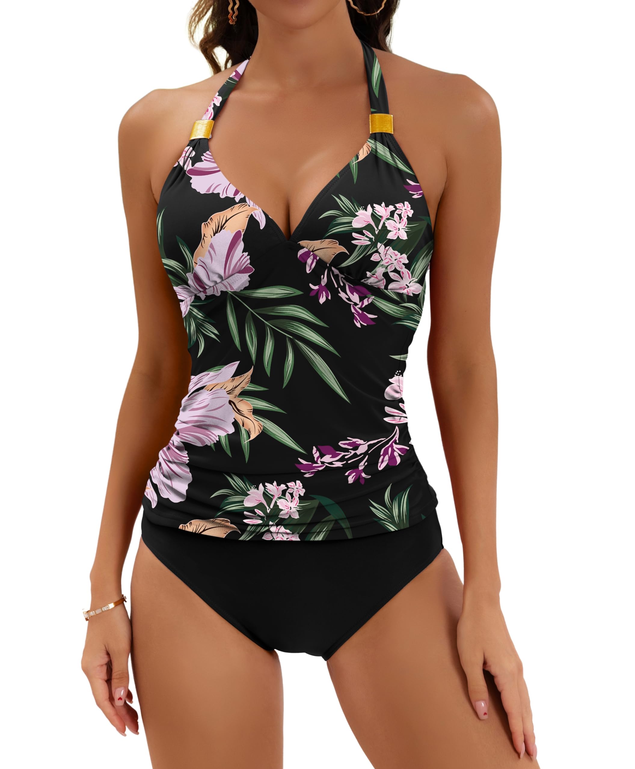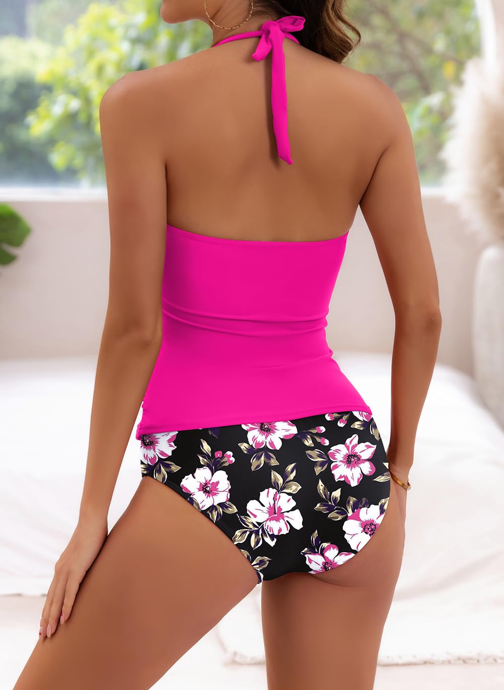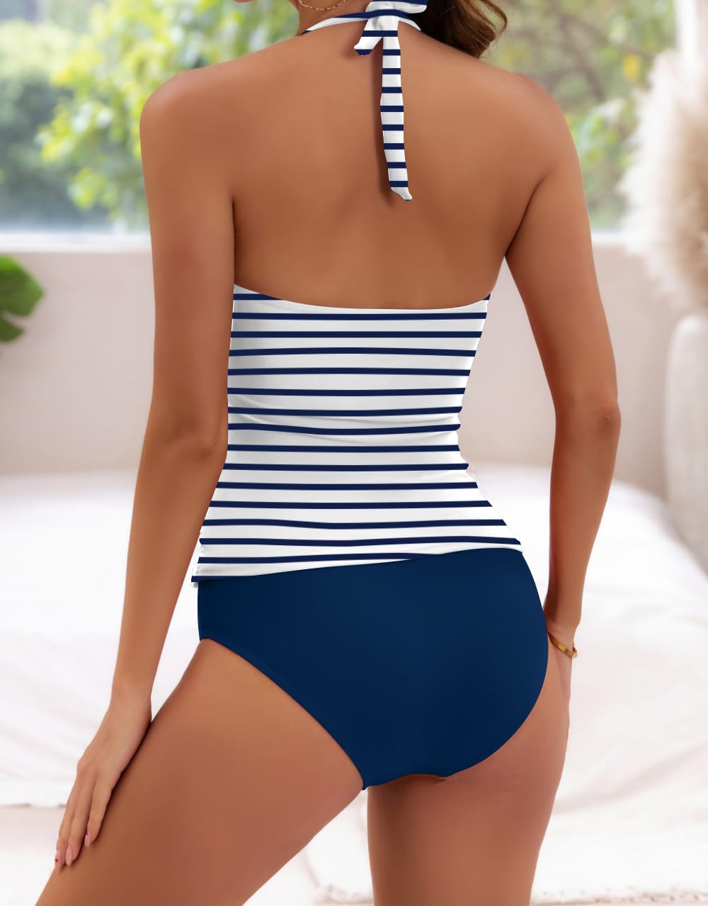 B2prity Women Cutout One Piece Skirt Swimsuit V Neck Wrap Tie Back Swimdress Tummy Control Bathing Suits