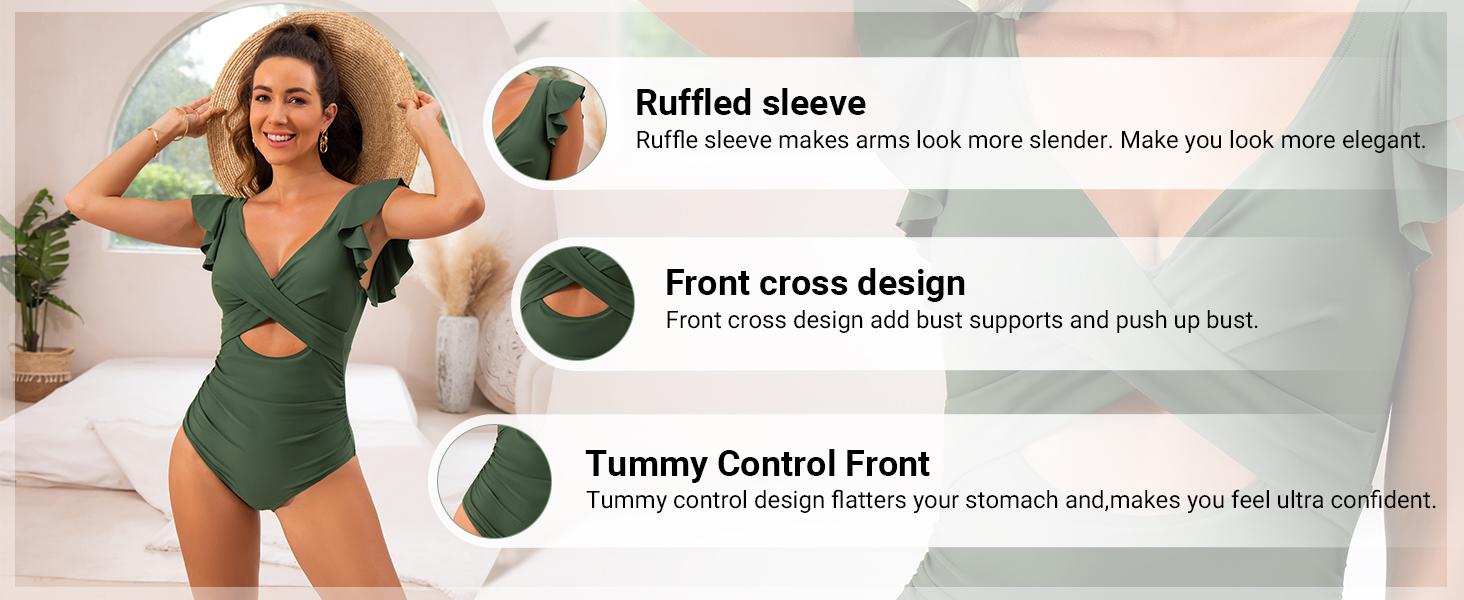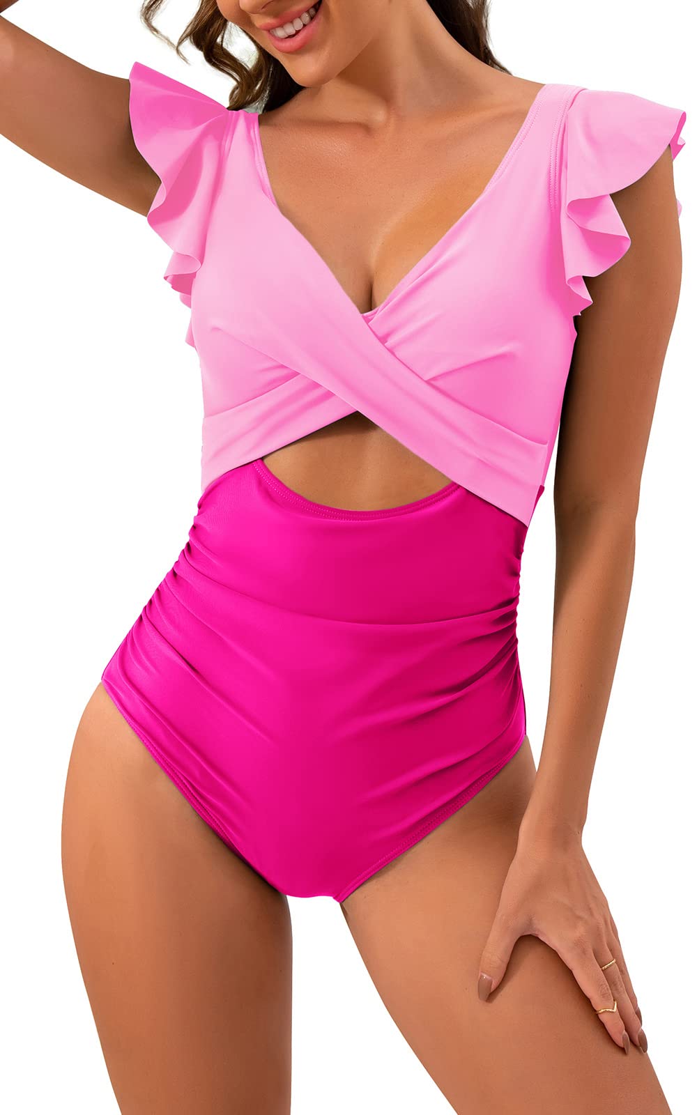 Ruffle Cutout Tummy Control V Neck Wrap One Piece Swimsuit