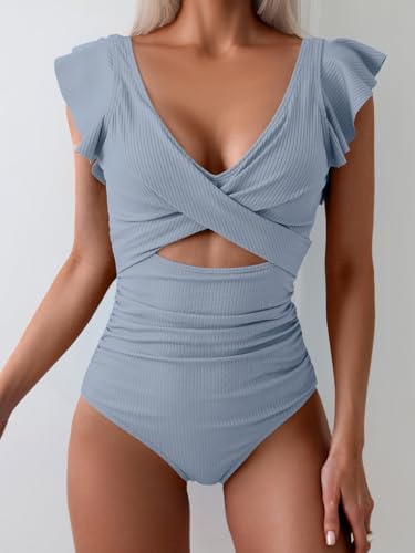 B2prity Women Cutout One Piece Skirt Swimsuit V Neck Wrap Tie Back Swimdress Tummy Control Bathing Suits