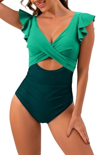 B2prity Women Cutout One Piece Skirt Swimsuit V Neck Wrap Tie Back Swimdress Tummy Control Bathing Suits B2prity Women Cutout One Piece Skirt Swimsuit V Neck Wrap Tie Back Swimdress Tummy Control Bathing Suits