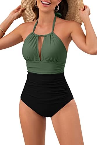 Tummy Control One Piece Bathing Suits Women's High Waisted Swimsuits Summer Vocation Beaches Dress With Cutout