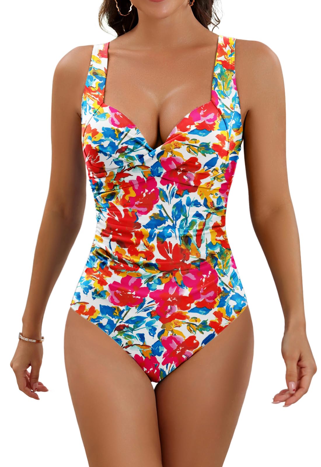 Women's Floral One Piece Swimdress Tummy Control Swimsuit