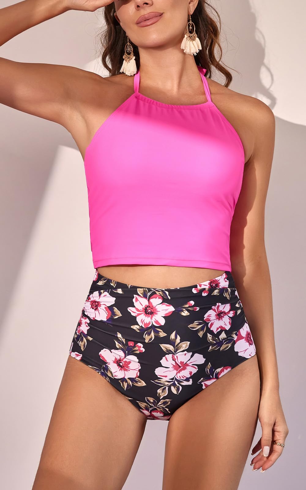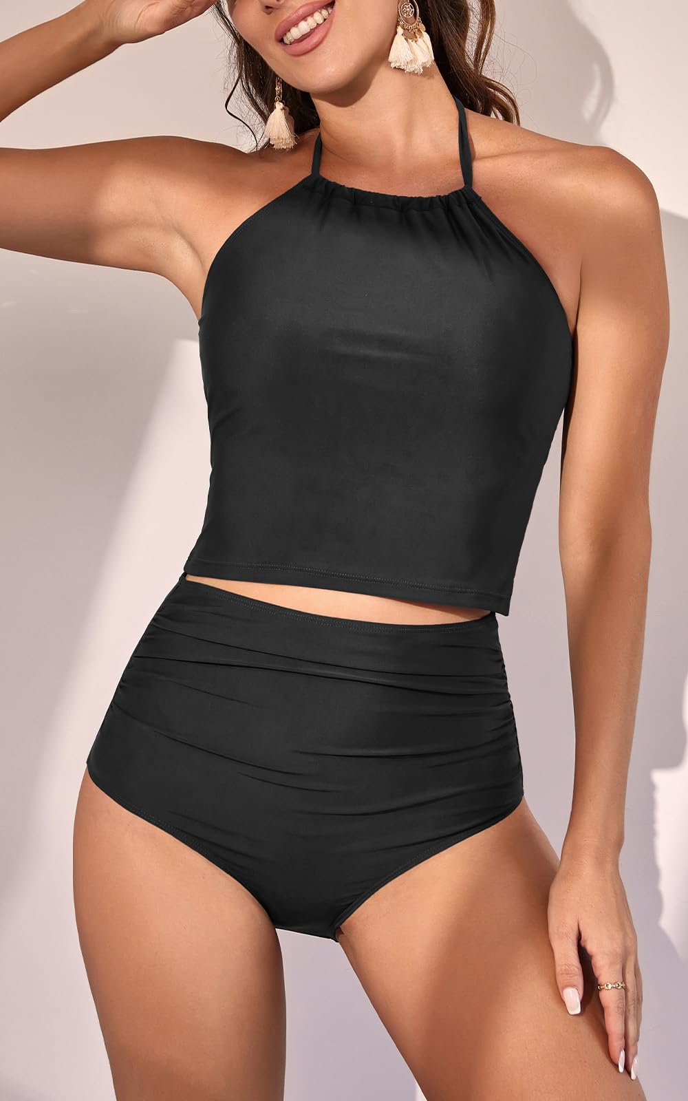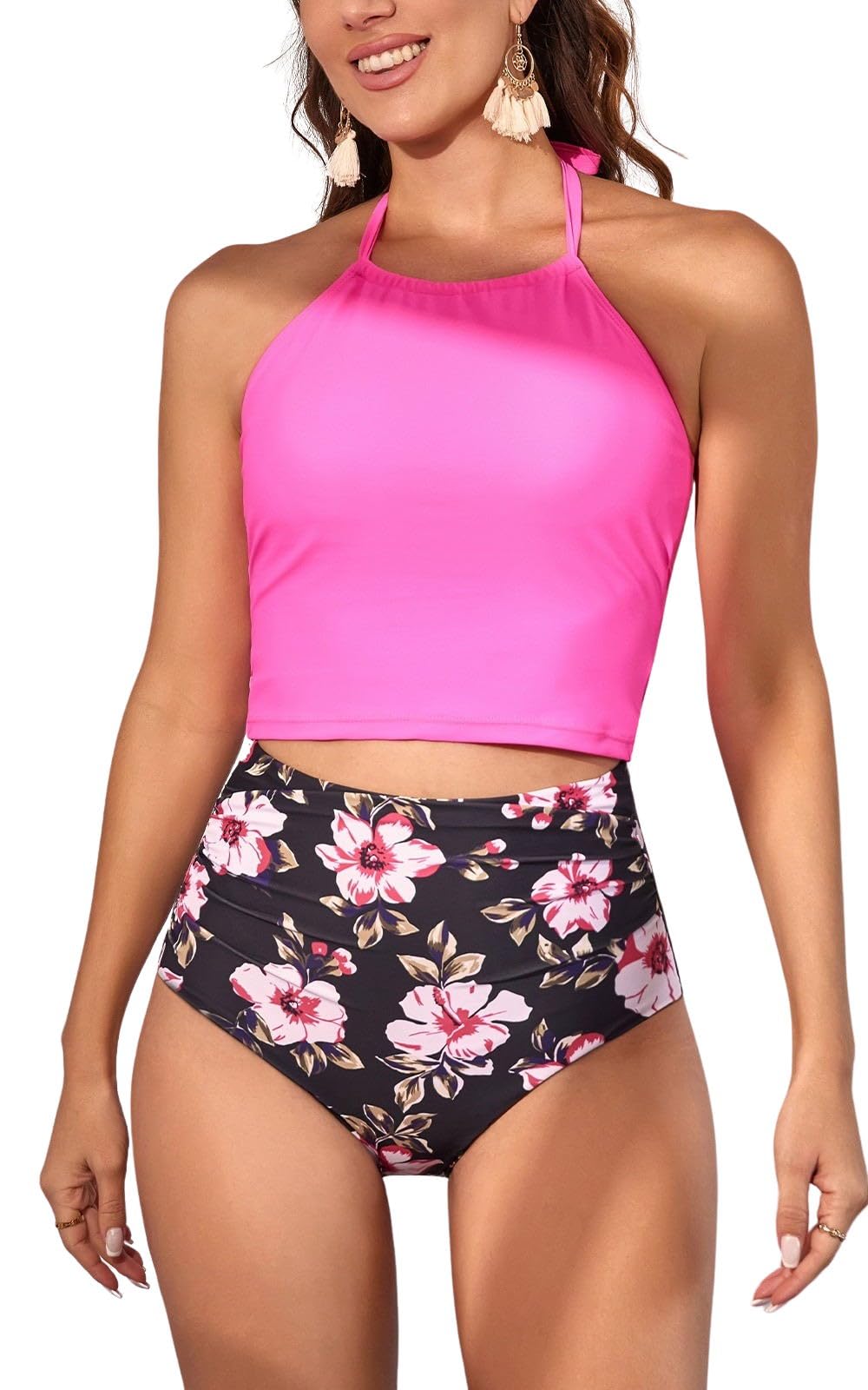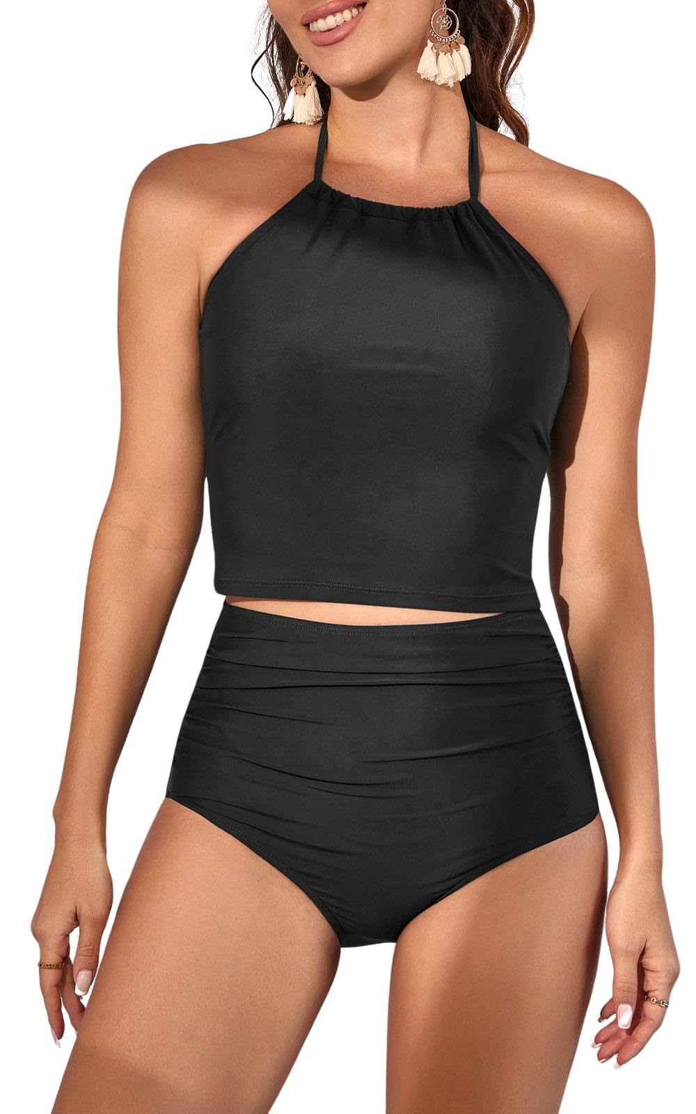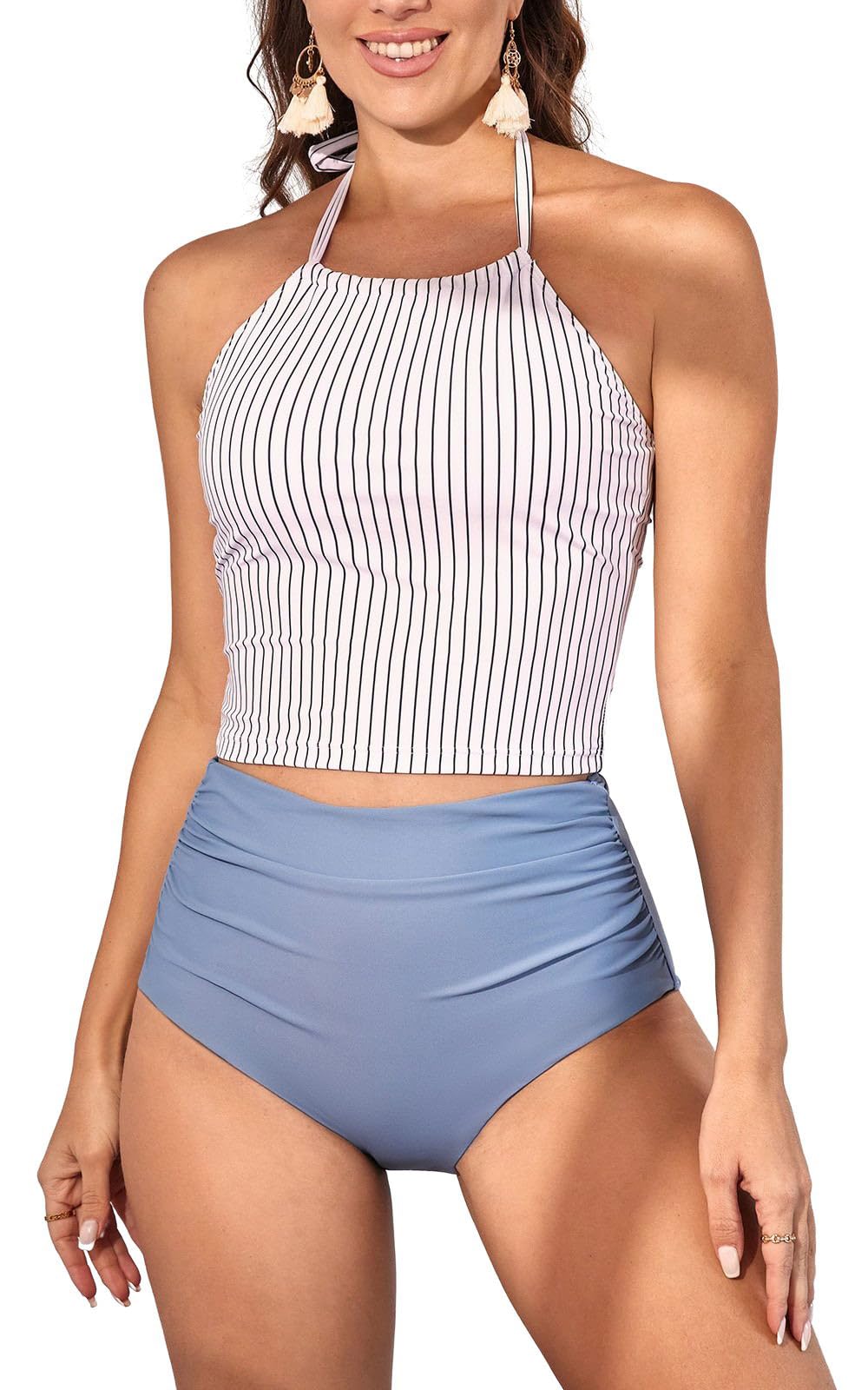 Two Piece Tummy Control Halter Tankini Swimsuit